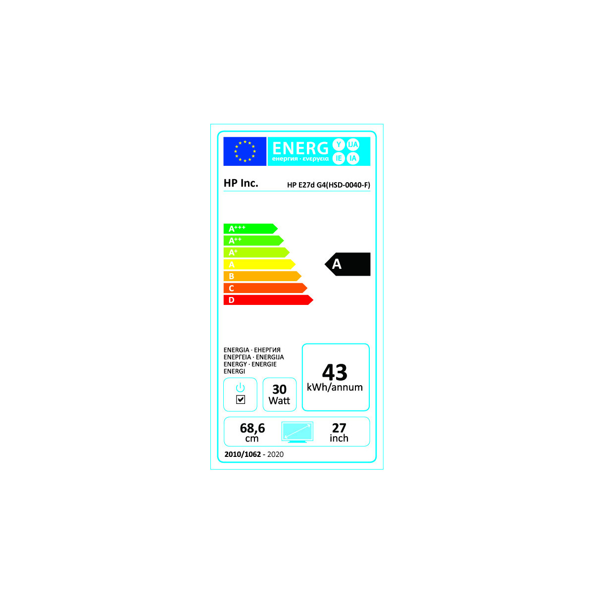HP E27d G4. Dimensioni schermo: 68,6 cm (27"), Risoluzione del display: 2560 x 1440 Pixel, Tipologia HD: Quad HD, Tecnologia display: LED, Tempo di risposta: 5 ms, Rapporto d'aspetto nativo: 16:9, Angolo di visualizzazione (orizzontale): 178°, Angolo di visualizzazione (verticale): 178°. Hub USB integrato. Montaggio standard VESA, Regolazione altezza. Colore del prodotto: Nero