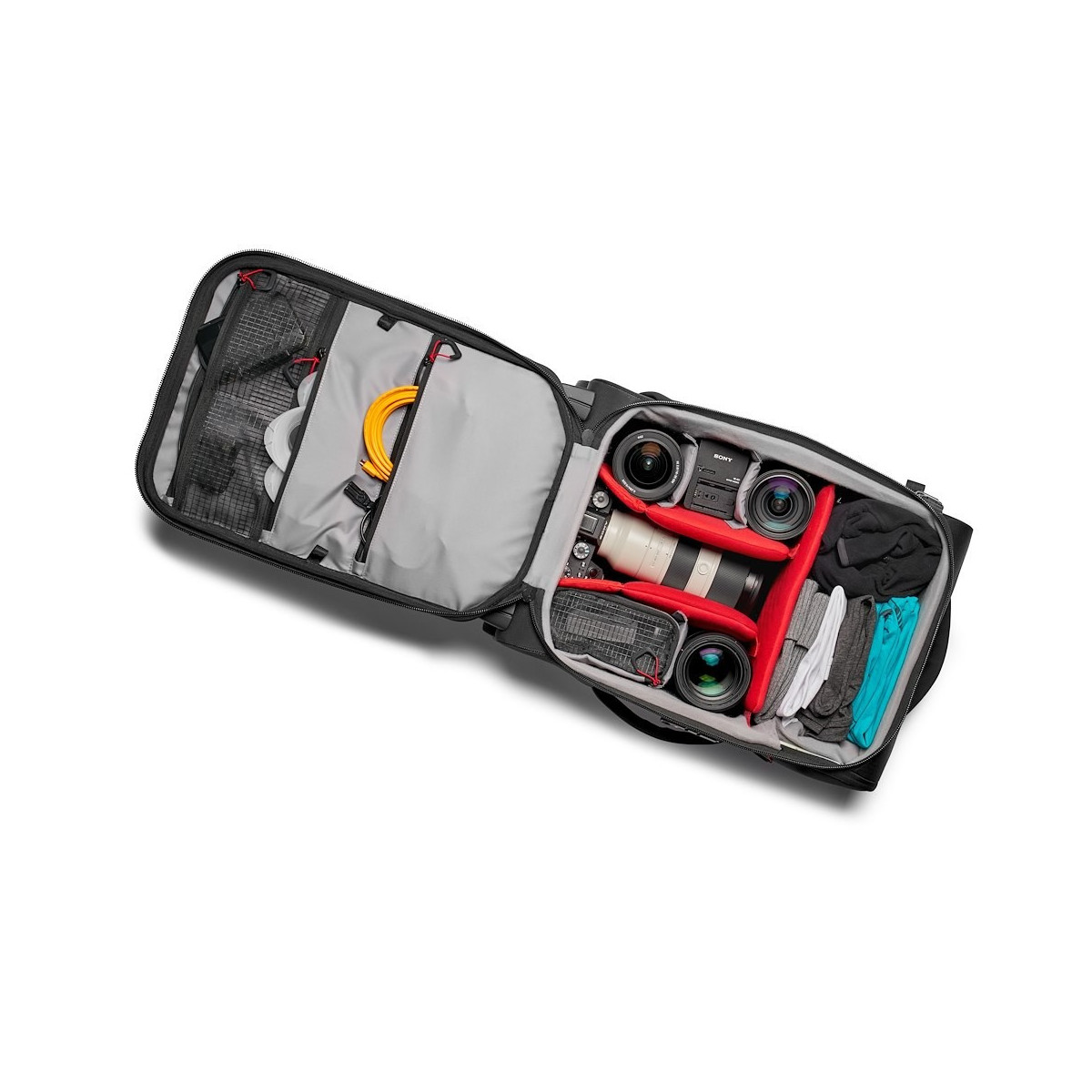 Manfrotto Pro Light Reloader Air-55. Tipologia custodia: Custodia trolley, Compatibilità marca: Universale, Compatibilità: Canon EOS M3, Canon EOS M5, Canon EOS M6, Fujifilm X-Pro2, Fujifilm X-T1, Fujifilm X-T1 IR,..., Colore del prodotto: Nero