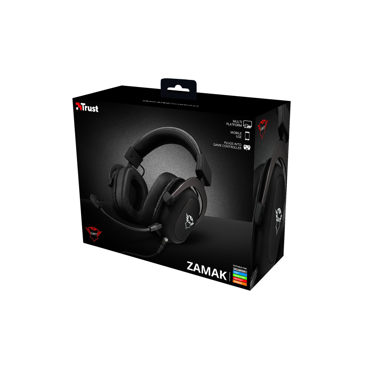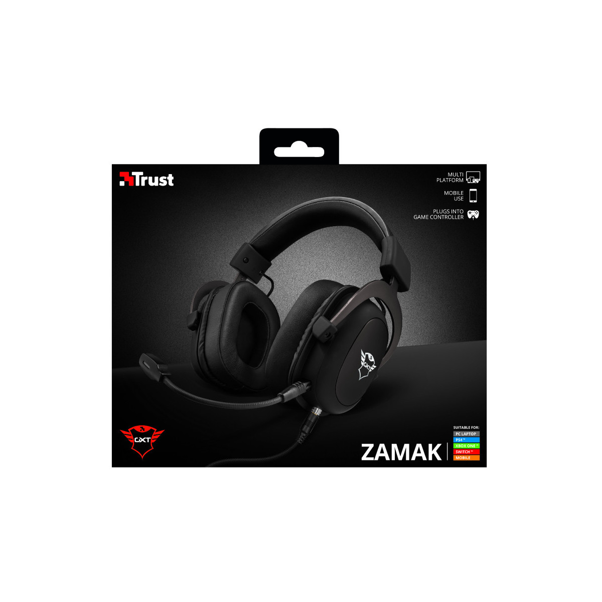 Trust GXT 414 Zamak. Tipo di prodotto: Cuffia, Stile d'uso: Padiglione auricolare, Utilizzo raccomandato: Giocare. Tecnologia di connessione: Cablato. Disegno auricolare: Sovraurale, Frequenza cuffia: 20 - 20000 Hz, Impedenza: 64 Ω. Tipo di microfono: Asta, Frequenza microfono: 100 - 10000 Hz, Tipo direzionamento microfono: Omnidirezionale. Larghezza: 185 mm, Profondità: 90 mm, Altezza: 150 mm