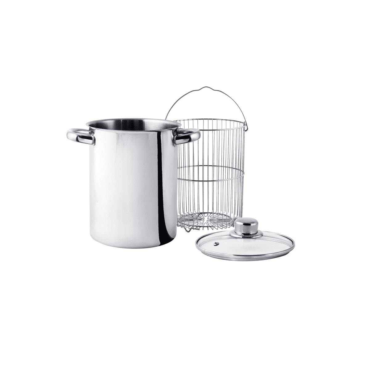 Asparagera cm 16 Acciaio inox con cestello e coperchio in vetro