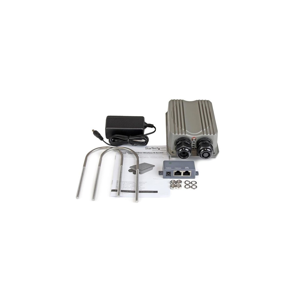 StarTech.com Punto di Accesso WiFi Wireless Access Point WiFi per esterno 802.11 b/g/n da 300 Mbps con 2T2R da 2.4Ghz - POE. Velocità massima di trasferimento dati: 300 Mbit/s, Velocità trasferimento dati wireless LAN (max): 300 Mbit/s, Banda di frequenza: 2.4 - 2.4835 GHz. Algoritmi di sicurezza supportati: AES,TKIP,WEP,WPA,WPA2. Protocolli supportati: CSMA/CA. Voltaggio di ingresso: 100 - 240 V, Corrente d'ingresso: 1 A, Voltaggio di uscita: 48 V. Colore del prodotto: Grigio, Materiale della scocca: Alluminio, Plastica, Codice di protezione internazionale (IP): IP67