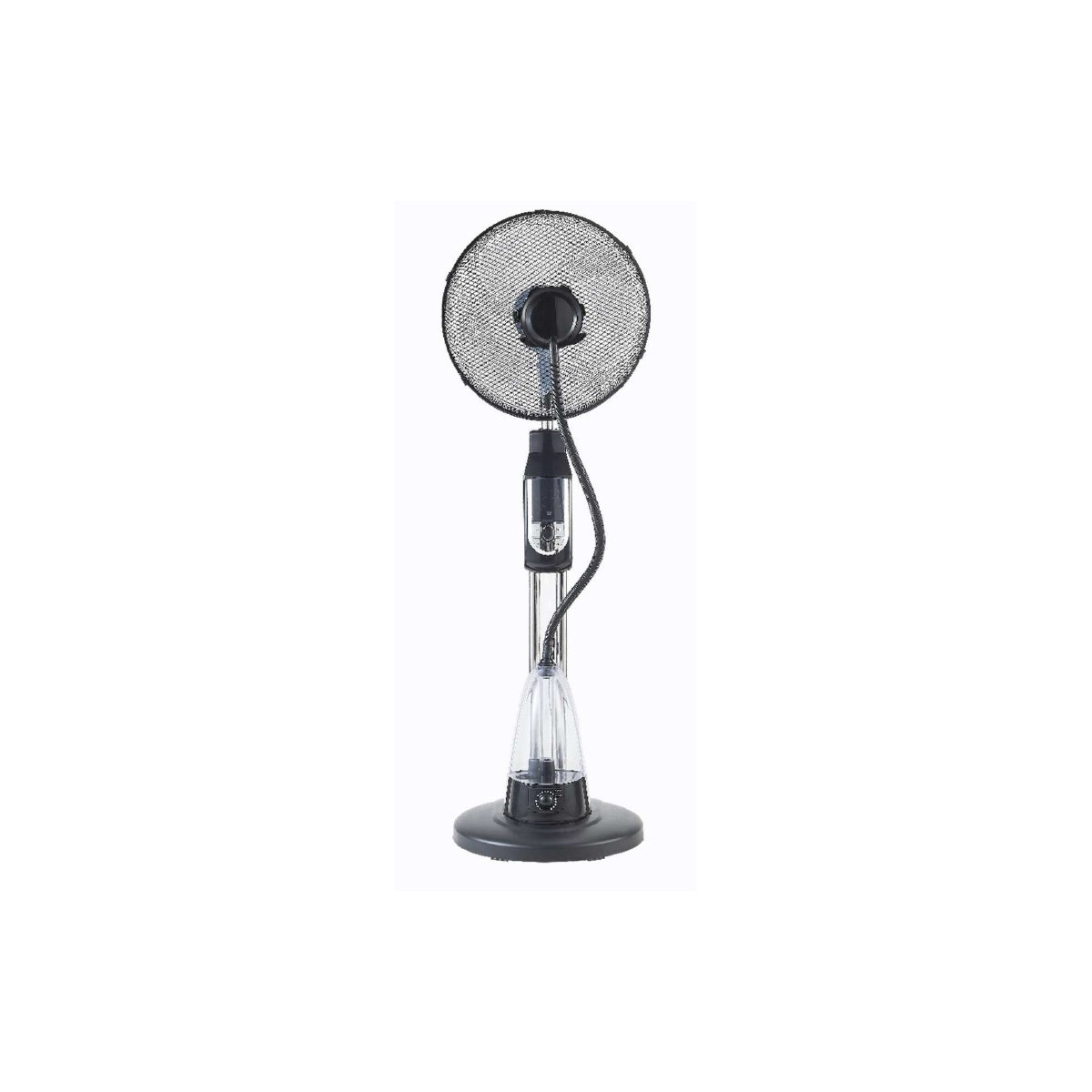 Ventilatore a piantana ø 40 cm. 3 velocità. Base tonda. Funzione brezza naturale e notturna. Umidificatore ad ultrasuoni. Oscillazione laterale automatica. Timer 7,5 ore. Telecomando.