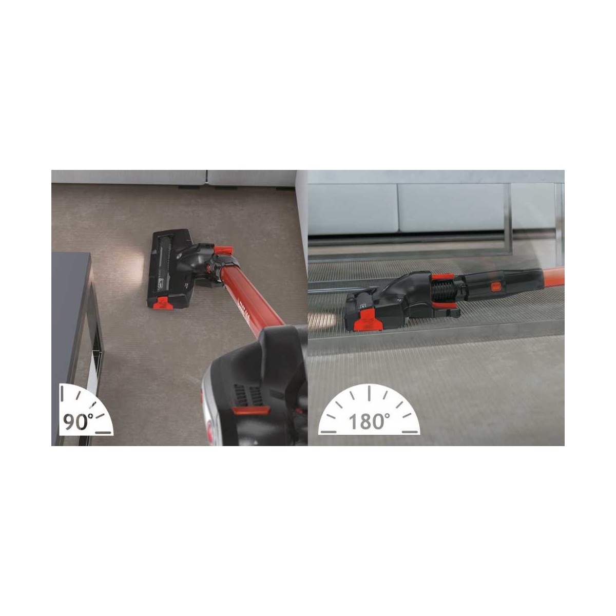 L'innovativa spazzola H-Lab Flat&Drive può ruotare a 90° e 180° per pulire negli spazi più stretti o negli angoli. Potrai aggirare facilmente tutti gli oggetti e pulire sotto i mobili raggiungendo con facilità spazi più angusti.