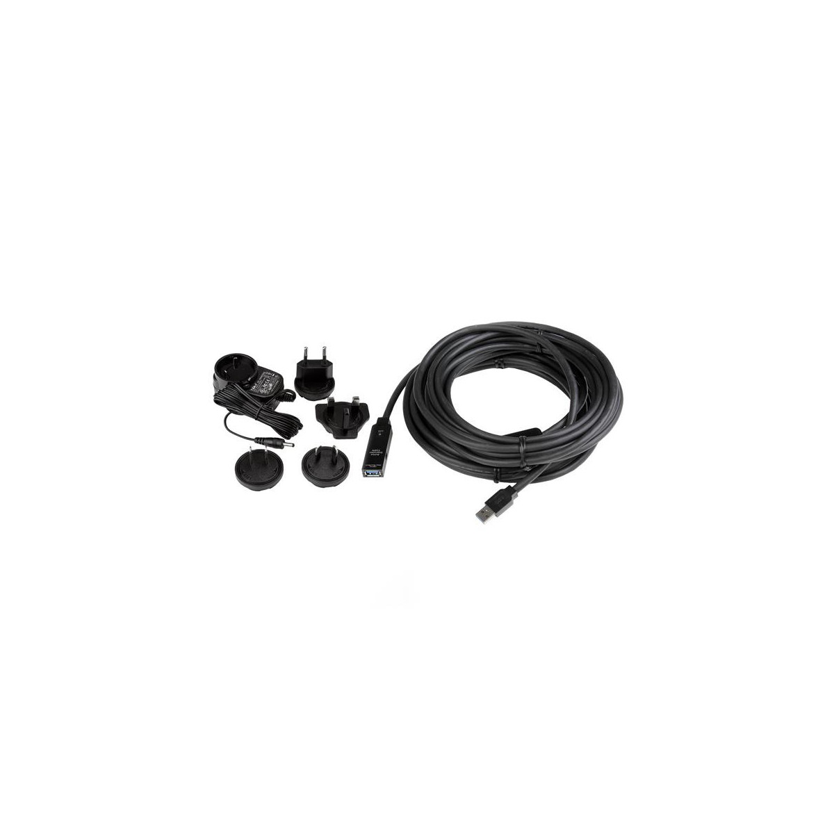 Questo cavo di estensione active USB 3.0 è una soluzione tutto in uno che permette il superamento delle limitazioni poste dalla distanza o dalla fonte di alimentazione e comprende una circuiteria attiva, alimentata tramite bus per assicurare le prestazioni oltre i limiti di lunghezza dei cavi USB standard. È possibile collegare a margherita fino a 2 cavi di questo tipo, permettendo l'estensione del collegamento fino a un totale di 20 metri. Se necessario, il dispositivo USB può essere alimentato da una presa a muro tramite l'adattatore di alimentazione universale AC fornito con il cavo.