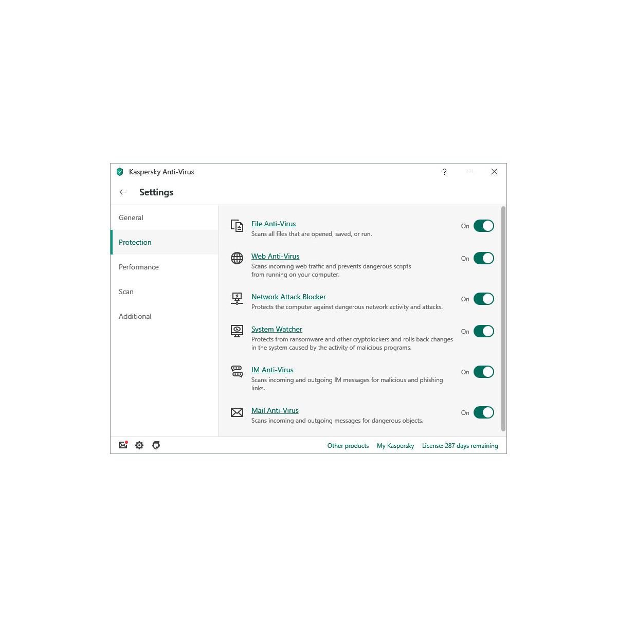 Assicura la massima protezione dai più recenti virus, ransomware, spyware, cryptolocker e altre pericolose minacce; impedisce inoltre al malware di mining delle criptovalute di danneggiare le performance del PC