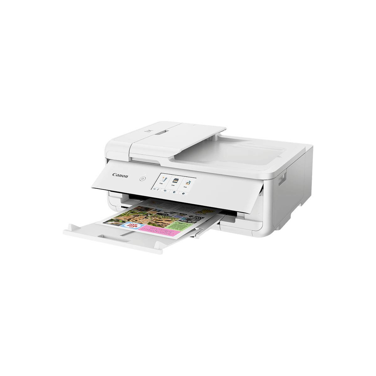 Scegli PIXMA TS9551C, il dispositivo multifunzione A3 compatto che ti permette di liberare la tua creatività grazie al supporto per i cartoncini da 12 x 12 pollici, ai modelli di motivi integrati e alla gestione di supporti multimediali. Con una tale varietà di opzioni creative, puoi far emergere il designer che è in te e realizzare adesivi per le unghie, calendari, collage e tanti altri progetti unici.