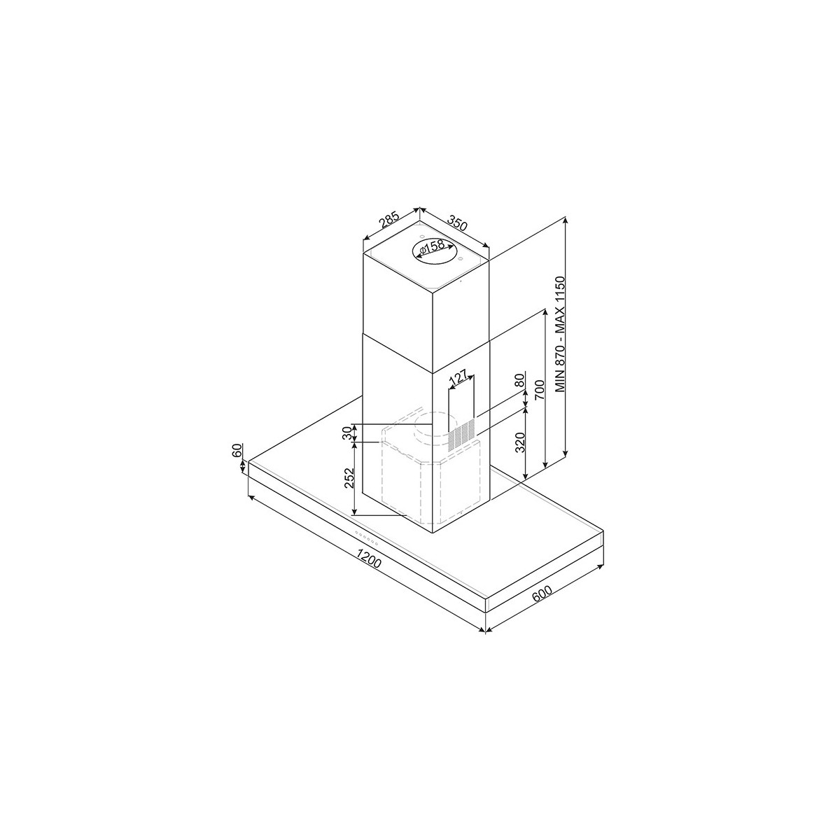 Larghezza cappa: 120 cm