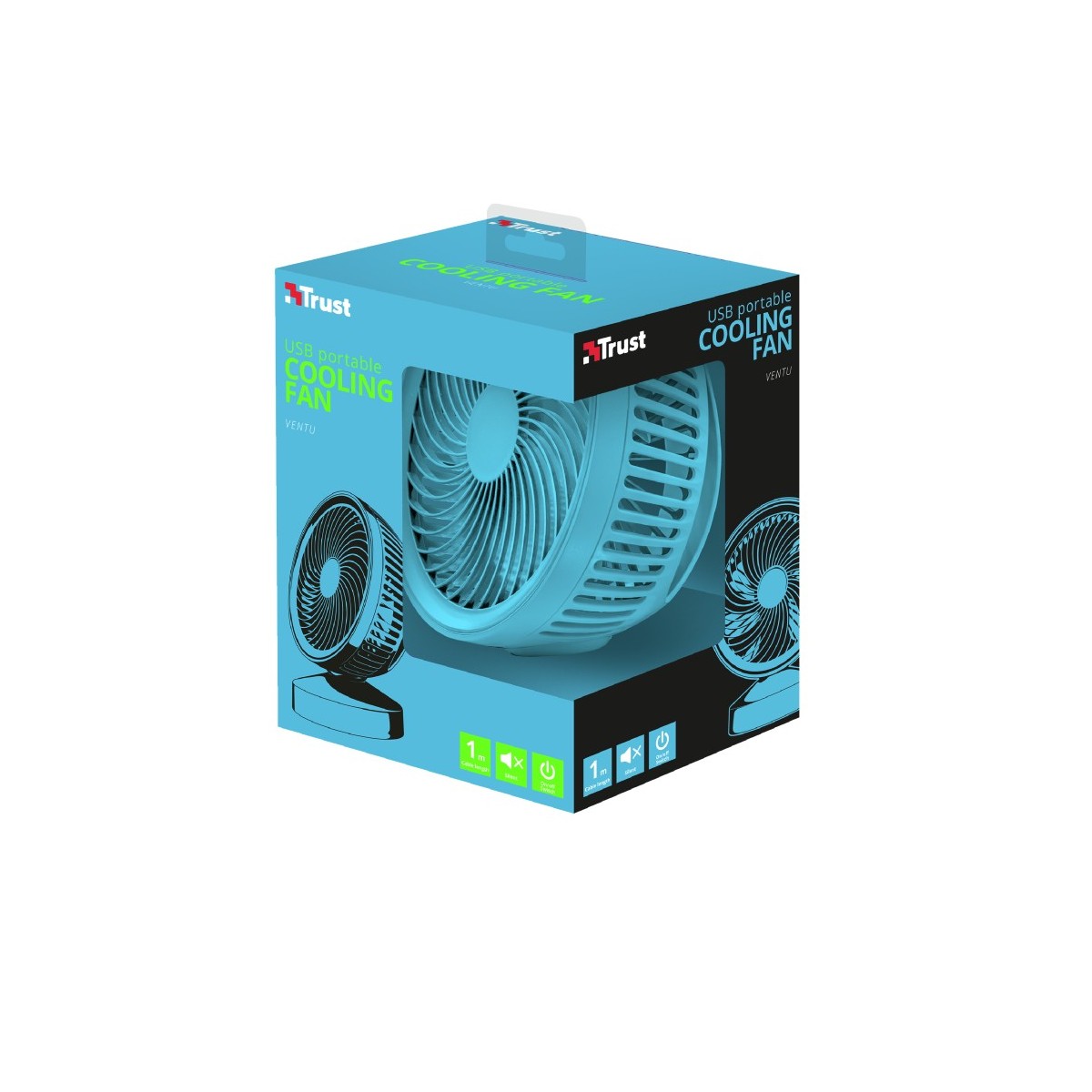 Trust 22580. Tipo: Ventilatore domestico con pale, Colore del prodotto: Blu, Installazione: Tavolo. Tipologia alimentazione: USB
