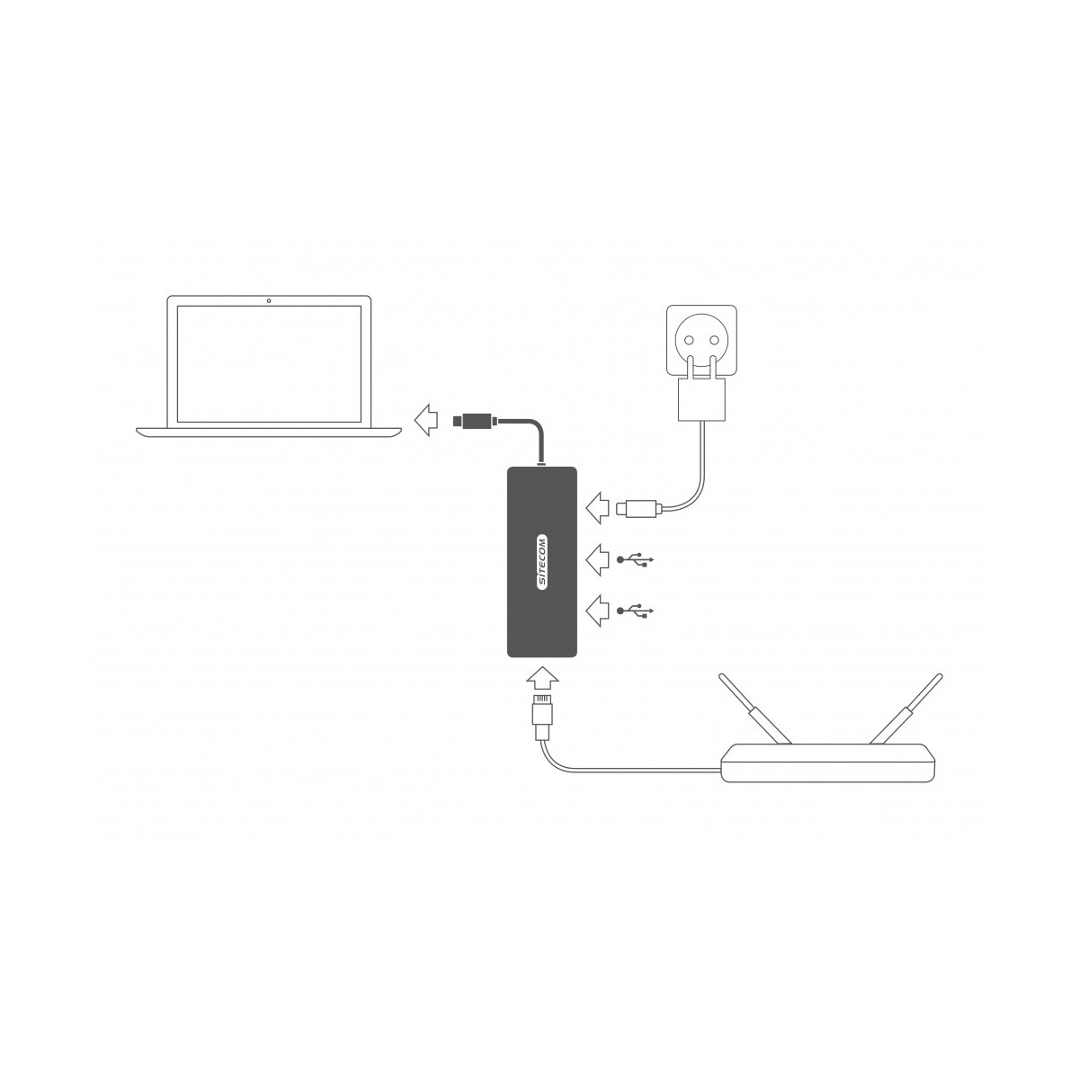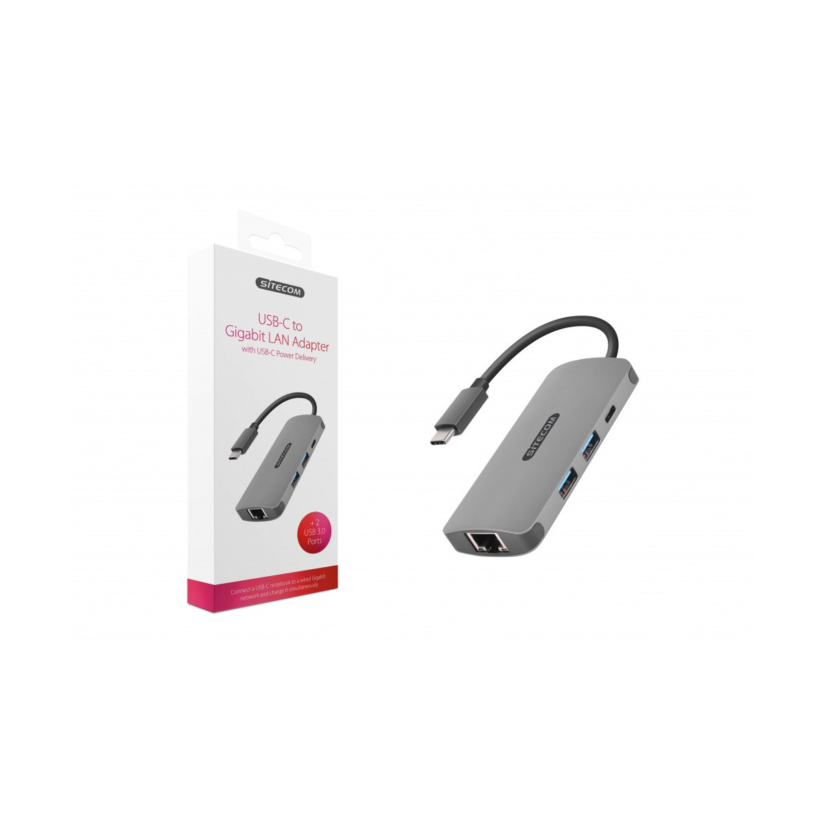 L'adattatore CN-378 | USB-C to Gigabit LAN Adapter with USB-C Power Delivery di Sitecom consente di collegare un cavo di rete alla porta USB-C del MacBook, notebook Windows o dispositivo mobile e di collegarsi a Internet via cavo con velocità Gigabit.