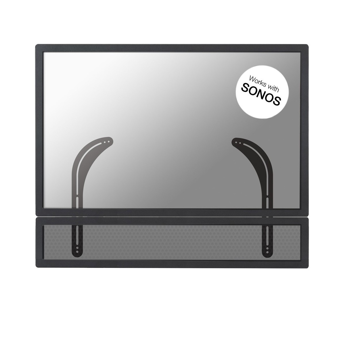 The NewStar NeoMounts SONOS soundbar mount, NM-USP100BLACK is the best choice universal soundbar bracket to mount your SONOS PLAYBAR to your existing TV bracket. This mount is a great choice for space saving placement on ceilings and walls to guarantee an optimal listening position. This mount easily combines with any brand flat screen wall- or ceiling mount. Ideal to hold both flat screen TVs and the Playbar itself, allowing both units to rotate to face the viewer.