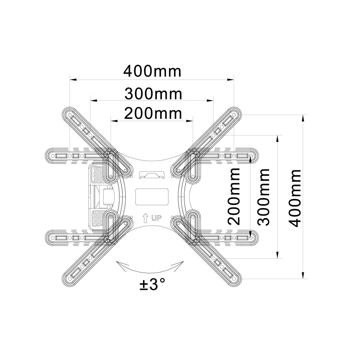 Il supporto NM-W325BLACK è adatto a schermi fino a 55" (140 cm) con una capacità massima di trasporto di 25 kg. Questo prodotto è adatto per schermi con fori VESA modello 100x100 fino a 400x400 mm. Per una diversa (più grande) foratura, si può combinare con una delle nostre piastre di adattamento VESA.