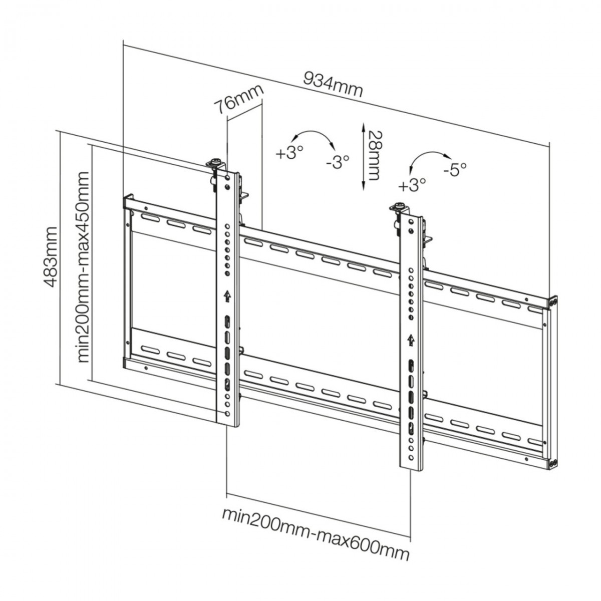 Il montaggio a parete NewStar, modello LED-VW500BLACK è realizzato appositamente per la creazione di video wall e consente di collegare uno schermo TV LCD/LED/PLASMA a qualsiasi parete con una distanza dal muro di soli 5 cm in modo da creare un piacevole effetto quadro.