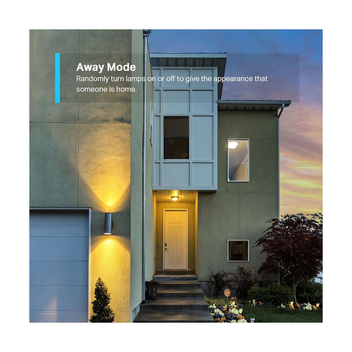 La modalità assenza è una funzione che simula la tua presenza in casa accendendo o spegenendo gli elettrodomestici connessi alla presa, come una lampada o una tv, scoraggiando potenziali visitatori indesiderati.