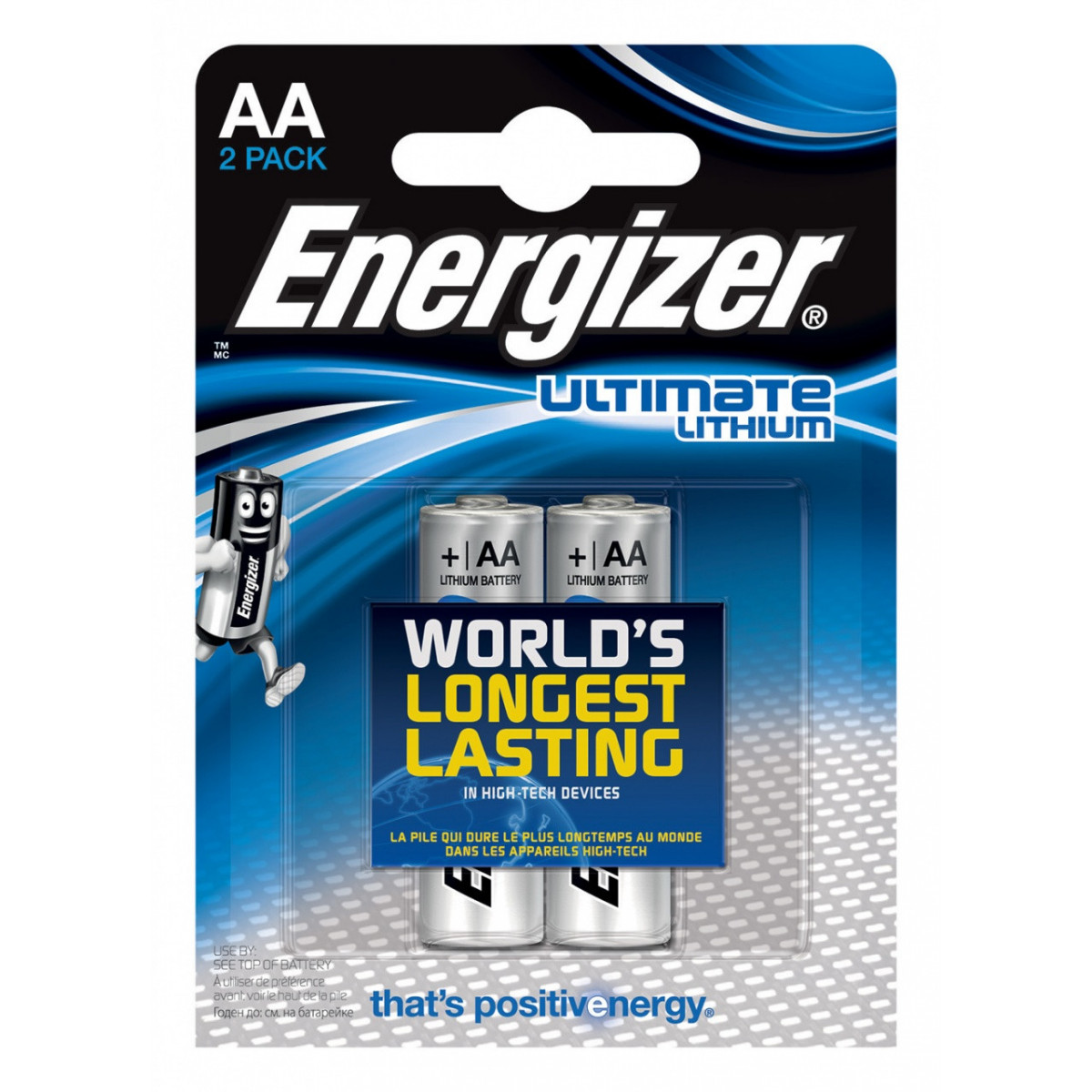 Energizer Ultimate Litio AA. Tipo batteria: Batteria monouso, Dimensione della batteria: Stilo AA, Tecnologia batteria: Litio. Altezza: 50,5 mm, Diametro: 1,45 cm, Peso: 15 g. Tipo di imballo: Blister