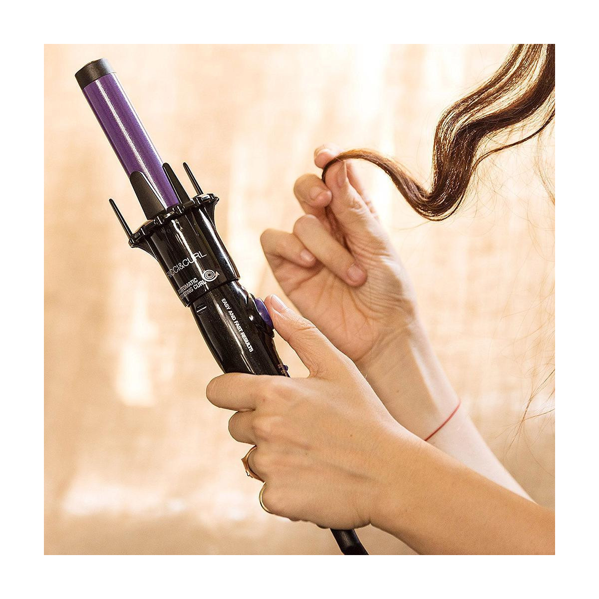Questo innovativo arricciacapelli è dotato di un sistema automatico di rotazione che avvolge delicatamente la ciocca, riscaldandola e modellandola in pochi attimi: basta inserire la ciocca, premere un pulsante e al segnale acustico sfilare il cilindro per ottenere un riccio impeccabile.