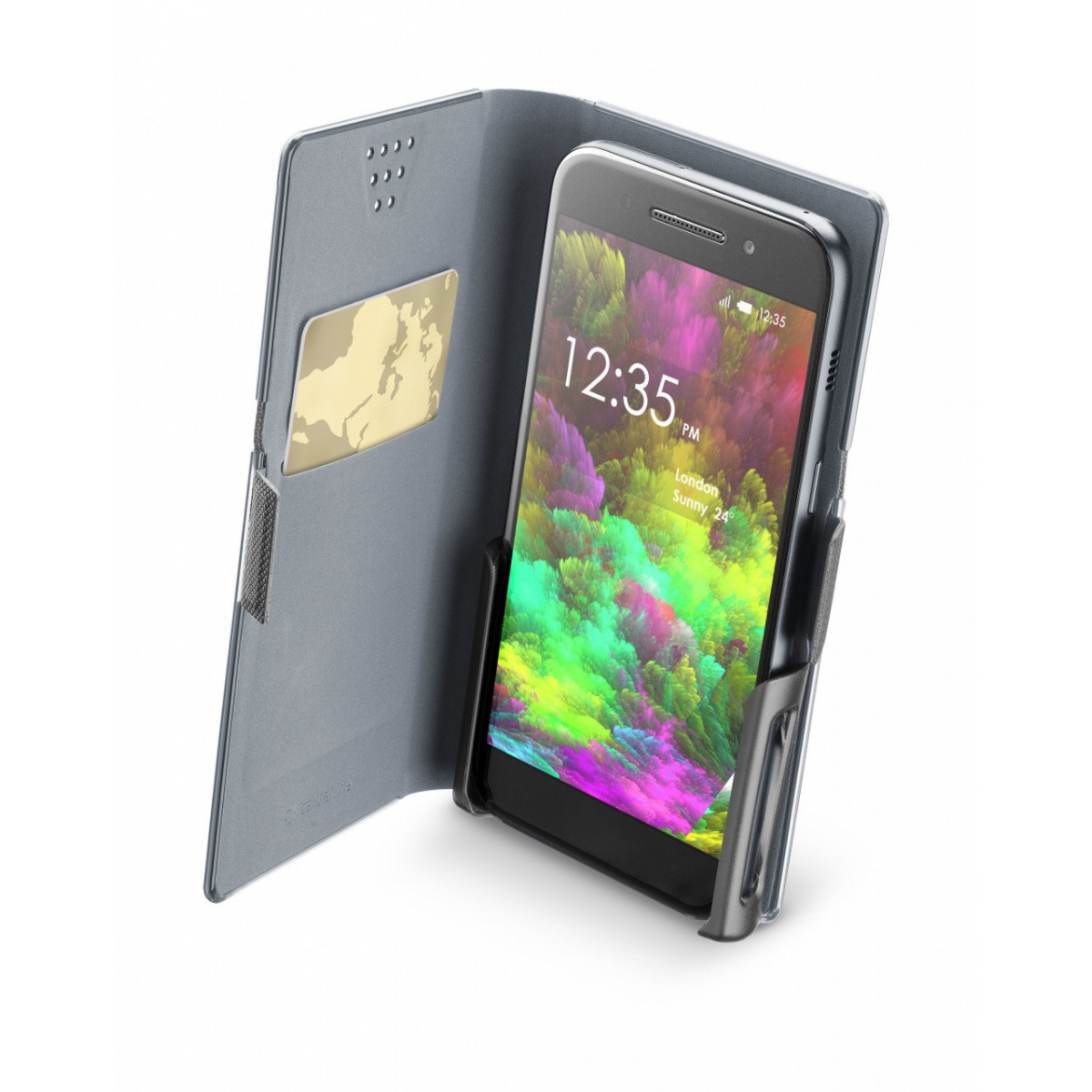 Cellularline Slide & Click - L: (Misure max telefono: 90mm * 170mm) Custodia a libro multicompatibile effetto pelle Nero. Tipologia custodia: Custodia a libro, Compatibilità marca: Universale, Compatibilità: 90 x 170 mm, Colorazione superficie: Monocromatico, Colore del prodotto: Nero, numero di pacchetti card: 1