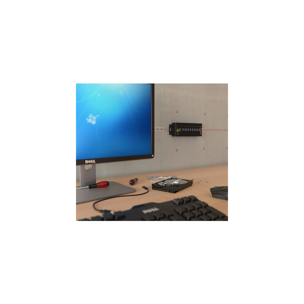 Consente di aggiungere dieci porte USB 3.0 (5 Gbps) utilizzando la guida DIN o un hub in metallo montabile sulla superficie