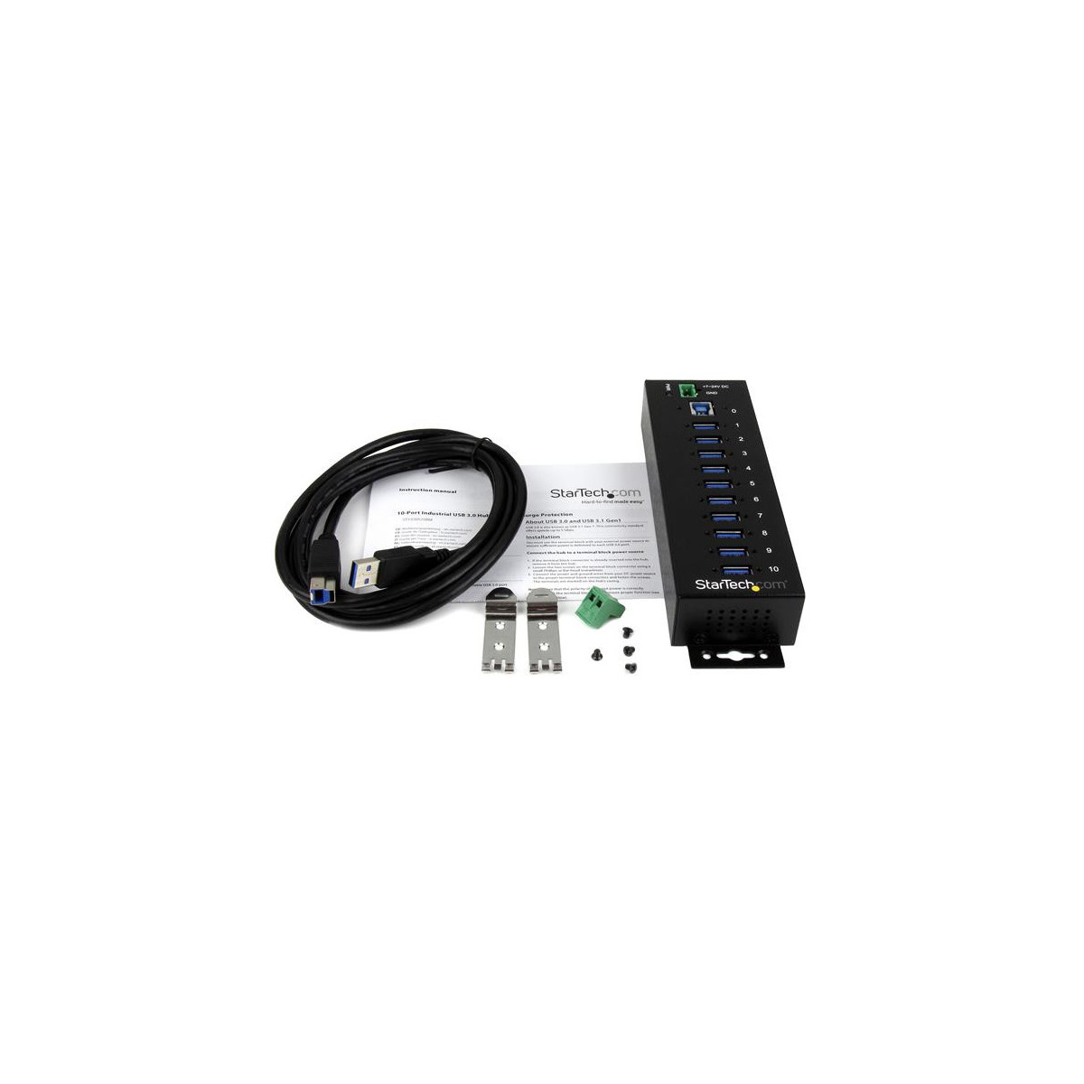 StarTech.com ST1030USBM. Interfaccia host: USB 3.2 Gen 1 (3.1 Gen 1) Type-B, Interfacce hub: USB 3.2 Gen 1 (3.1 Gen 1) Type-A. Velocità di trasferimento dati: 5000 Mbit/s, Colore del prodotto: Nero, Materiale della scocca: Acciaio. Voltaggio di ingresso: 7 - 24 V. Larghezza: 56 mm, Profondità: 198 mm, Altezza: 31 mm. Larghezza imballo: 169 mm, Profondità imballo: 246 mm, Altezza imballo: 57 mm