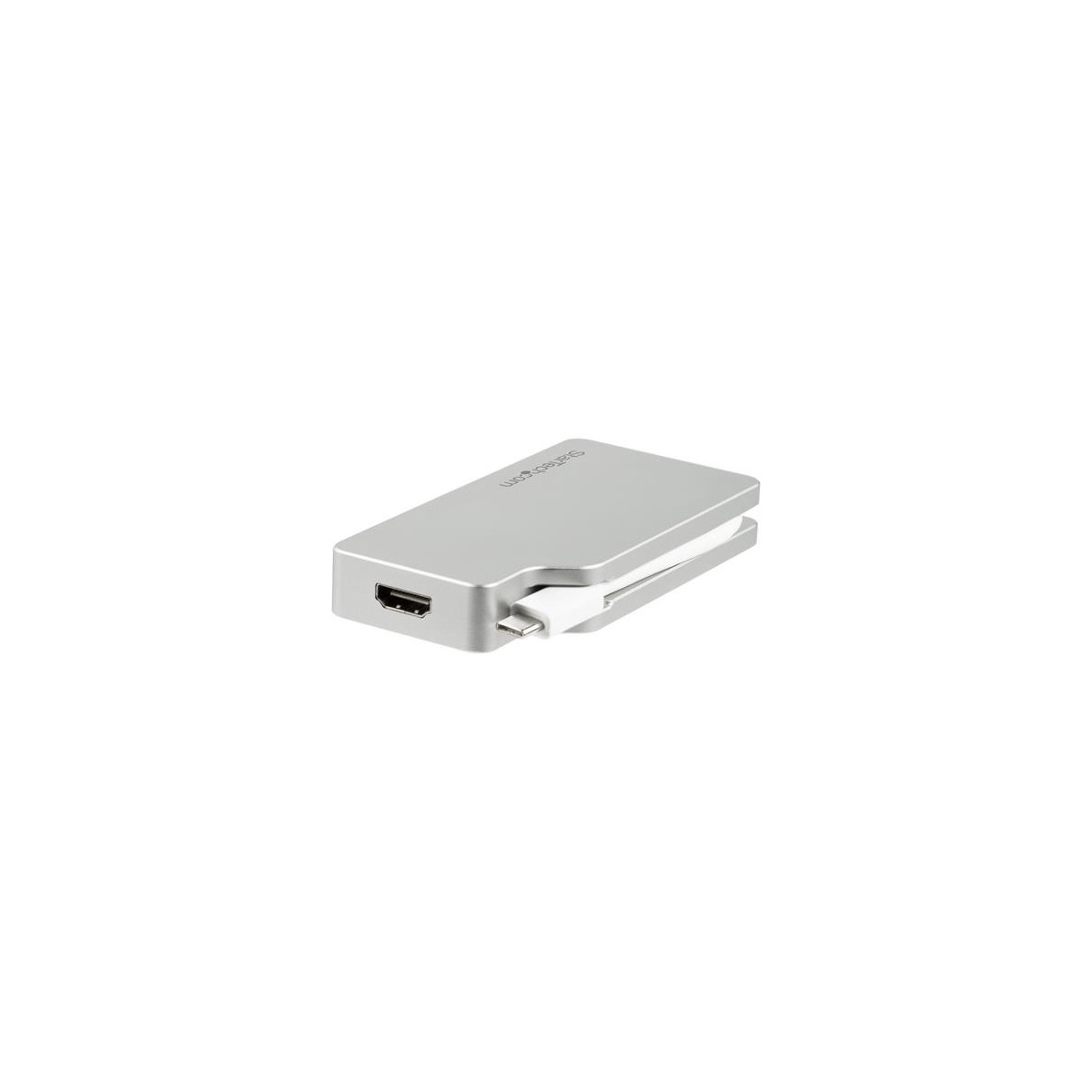StarTech.com Adattatore Audio/Video da Viaggio 4 in 1 - USB Type-C a VGA, DVI, HDMI o mDP - in Alluminio - 4K. Connettore USB: USB tipo-C, Tipo di connettore USB: Maschio, Tipo di connettore DVI: DVI-D. Colore del prodotto: Argento, Lunghezza cavo USB: 0,11 m. Larghezza: 55 mm, Profondità: 105 mm, Altezza: 15 mm. Quantità per cartone principale: 70 pezzo(i), Larghezza scatola principale: 44 cm, Lunghezza del cartone principale: 47,3 cm