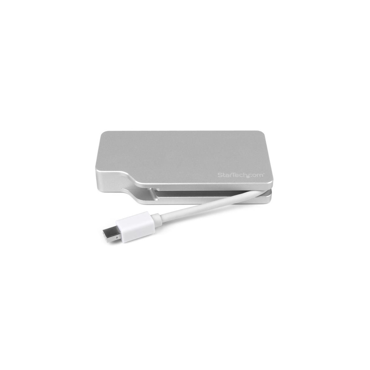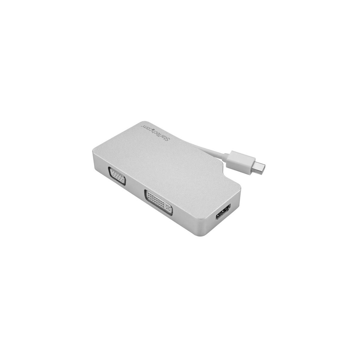 StarTech.com Adattatore Audio/Video da Viaggio 3 in 1 - Mini DisplayPort a VGA, DVI o HDMI - in Alluminio - 4K. Risoluzione massima video: 3840 x 2160 Pixel, Risoluzioni video: 1280 x 720,1920 x 1080,1920 x 1200,3840 x 2160. Sistema audio: 7.1 canali. Risoluzione massima: 3840 x 2160 Pixel, Colore del prodotto: Argento, Lunghezza cavo: 0,11 m. Interfaccia host: Mini DisplayPort, interfaccia output: VGA/DVI-D/HDMI. Larghezza: 55 mm, Profondità: 103 mm, Altezza: 15 mm