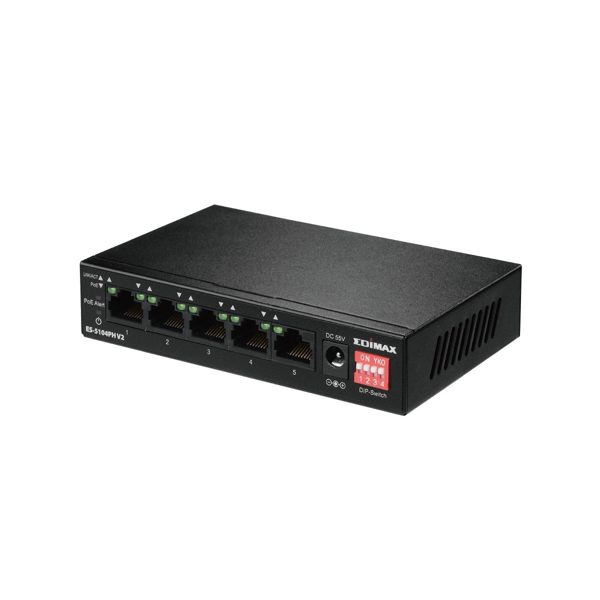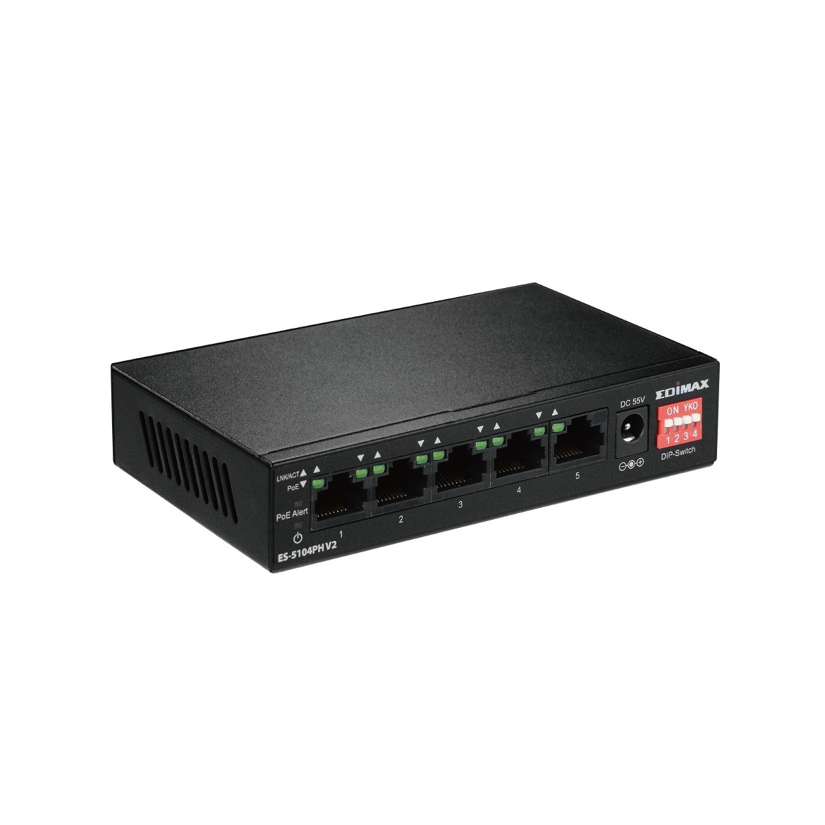 Edimax ES-5104PH V2 switch di rete Fast Ethernet (10/100) Nero Supporto Power over Ethernet (PoE)