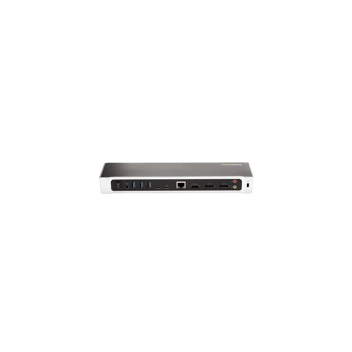 StarTech.com Docking Station per Portatili USB-C a Tripla Uscita 4K - Power Delivery USB. Tecnologia di connessione: Cablato, Interfaccia host: USB 3.2 Gen 1 (3.1 Gen 1) Type-C, Connessione cuffia: 3,5 mm. Velocità trasferimento Ethernet LAN: 10,100,1000 Mbit/s, Standard di rete: IEEE 802.3,IEEE 802.3ab,IEEE 802.3u. Colore del prodotto: Nero, Argento, Velocità di trasferimento dati: 6 Gbit/s, Risoluzione (digitale massima): 4096 x 2160 Pixel. Tensione di ingresso AC: 100 - 240 V, Corrente d'ingresso: 2 A, Alimentazione: 60 W. Sistema operativo Windows supportato: Windows 10,Windows 10 Education,Windows 10 Education x64,Windows 10 Enterprise,Windows 10..., Compatibilità sistema operativo Mac: Mac OS X 10.11 El Capitan,Mac OS X 10.12 Sierra,Mac OS X 10.14 Mojave,Mac OS X 10.15 Catalina,