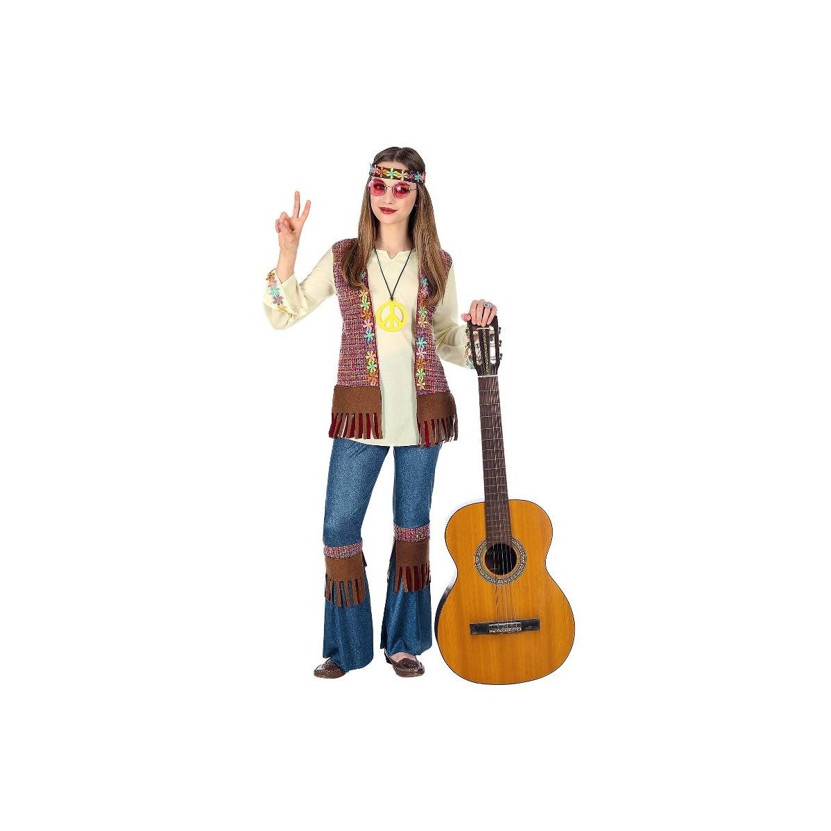 HIPPIE (camicia con gilet, pantaloni, fascia per testa, collana) (140 cm / 8-10 Years)
