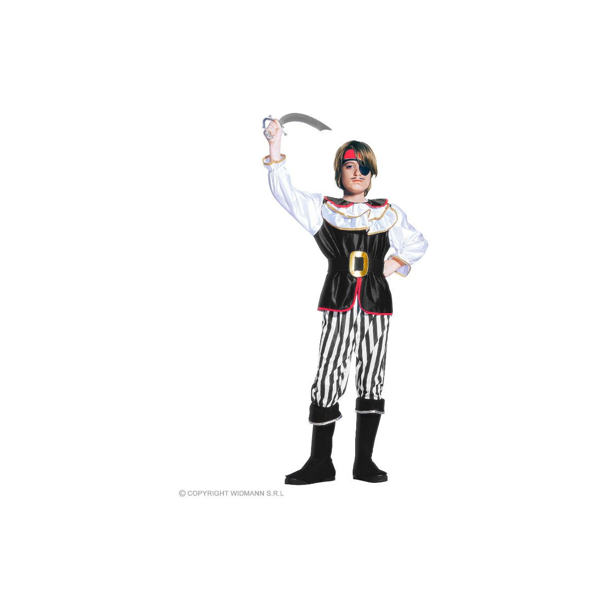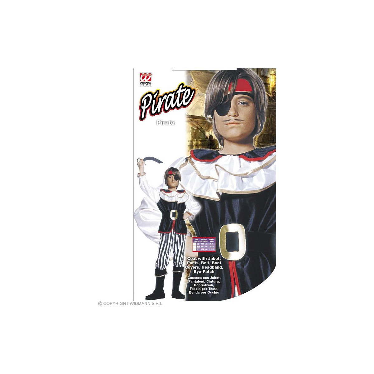 PIRATA (casacca con jabot, pantaloni, cintura, copristivali, fasciaper testa, benda per occhio) (140 cm / 8-10 Years)