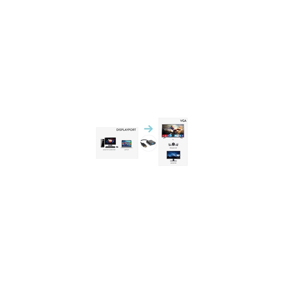 L'adattatore video da DP DisplayPort a VGA trasforma la porta DisplayPort del computer in uscita video VGA. Permette di collegare monitor, televisori e proiettori VGA a computer con uscita DisplayPort. L'adattatore supporta risoluzioni fino a 1080p.