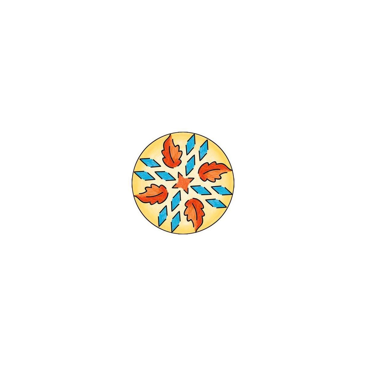 telaio di plastica, 1 sagoma Mandala grande, 1 sagoma Mandala piccola, fogli di carta, pennarello nero, matite colorate, istruzioni