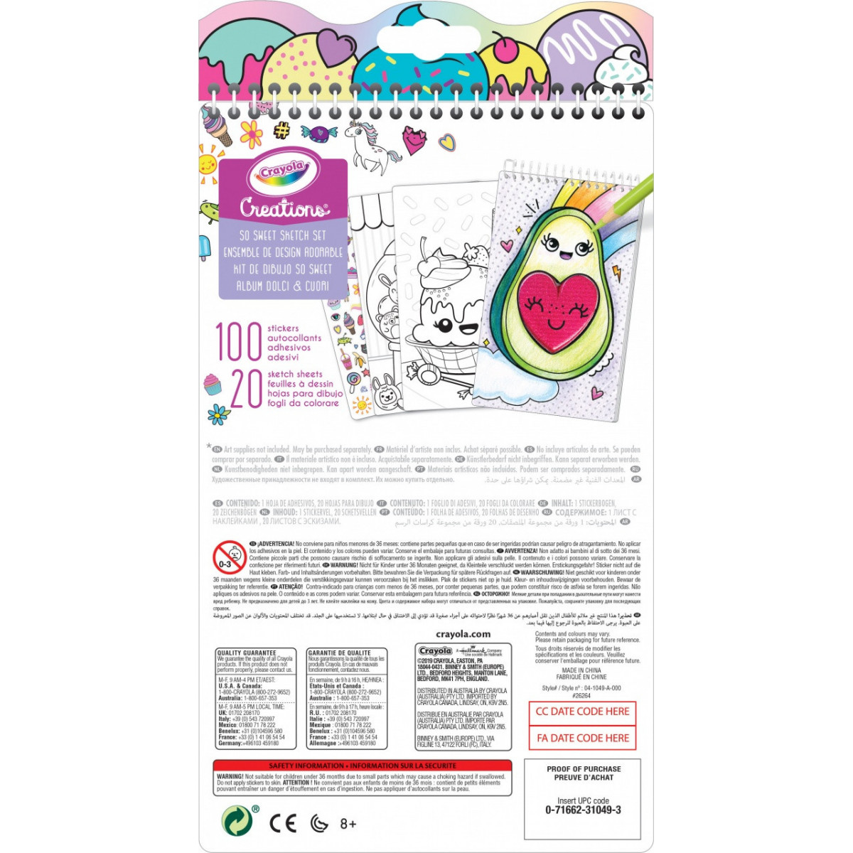 Crayola 04-1049. Colore del prodotto: Multicolore, Adesivi per pacco: 100 pezzo(i), Numero di pagine: 20 pagine. Quantità per pacco: 1 pezzo(i), Larghezza imballo: 145 mm, Profondità imballo: 10 mm. Larghezza scatola principale: 30 cm, Lunghezza del cartone principale: 20 cm, Altezza scatola principale: 35 cm