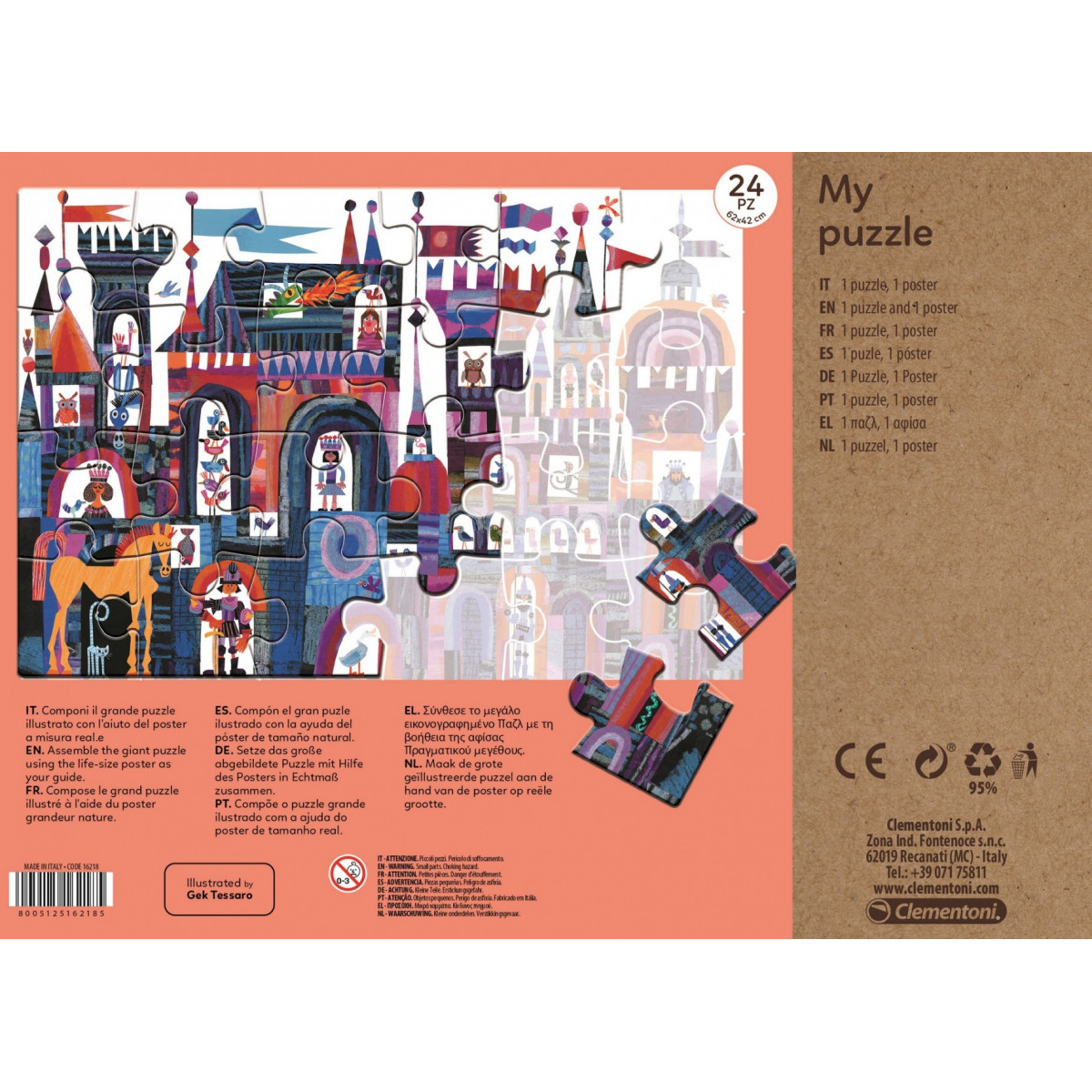 Puzzle con 24 maxi tessere pensato per coinvolgere e far divertire i più piccoli con colori allegri e vivaci ed immagini ricche di movimento.
