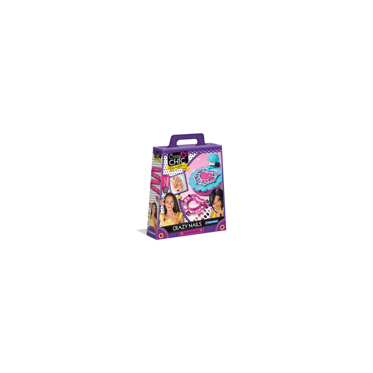 Clementoni Crazy Chic. Tipo di prodotto: Set di tatuaggi per unghie, Genere consigliato: Ragazza, Età consigliata (min): 6 anno/i. Tipo di imballo: Scatola, Larghezza imballo: 55 mm, Profondità imballo: 230 mm