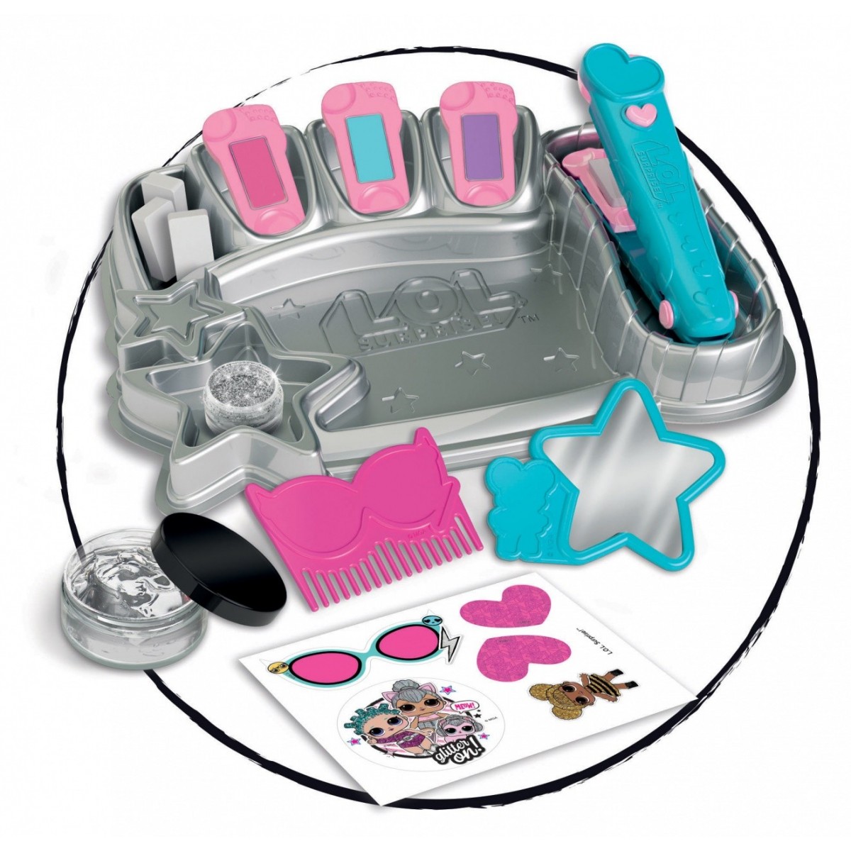 Contiene anche un pettine, uno specchietto e un gel glitterato per un look da vera LOL.