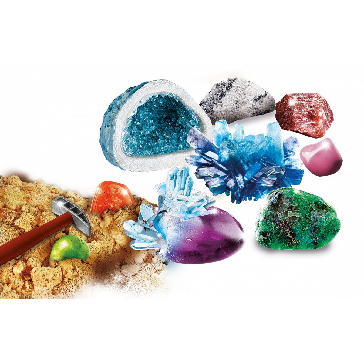 | Contenuto della scatola | Mattone da scavare, stampo per geode, gesso, sostanze chimiche, strumenti da laboratorio, manuale illustrato. |