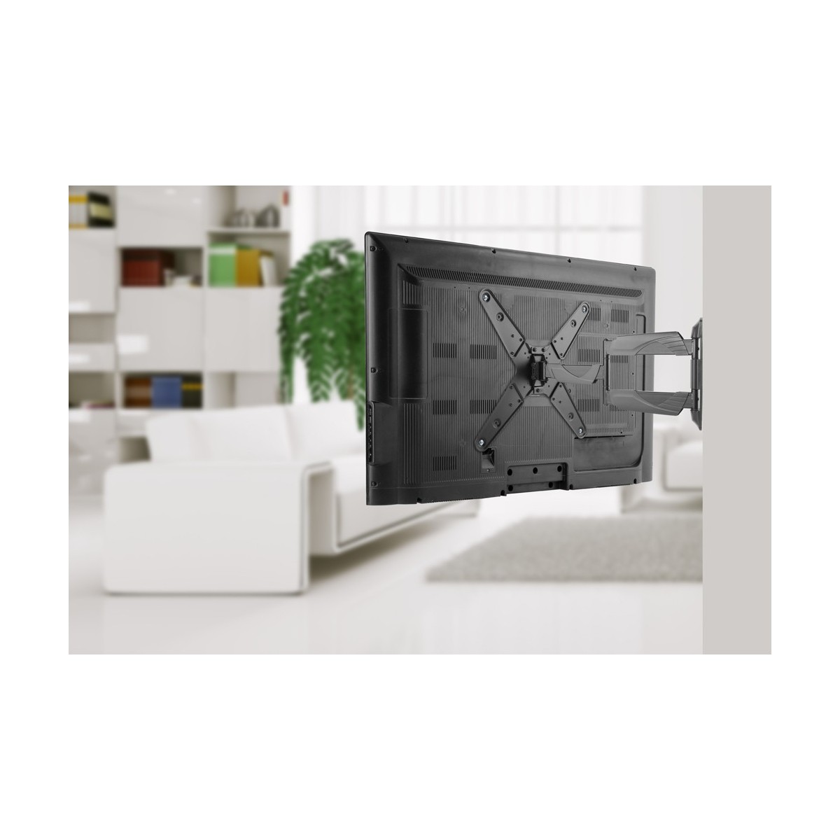 Il montaggio a parete è facile da regolare in profondità. È inoltre possibile inclinare lo schermo in senso verticale e orizzontale. Questo crea l'angolo di visione ideale. I cavi possono essere collocati sul lato inferiore del braccio.