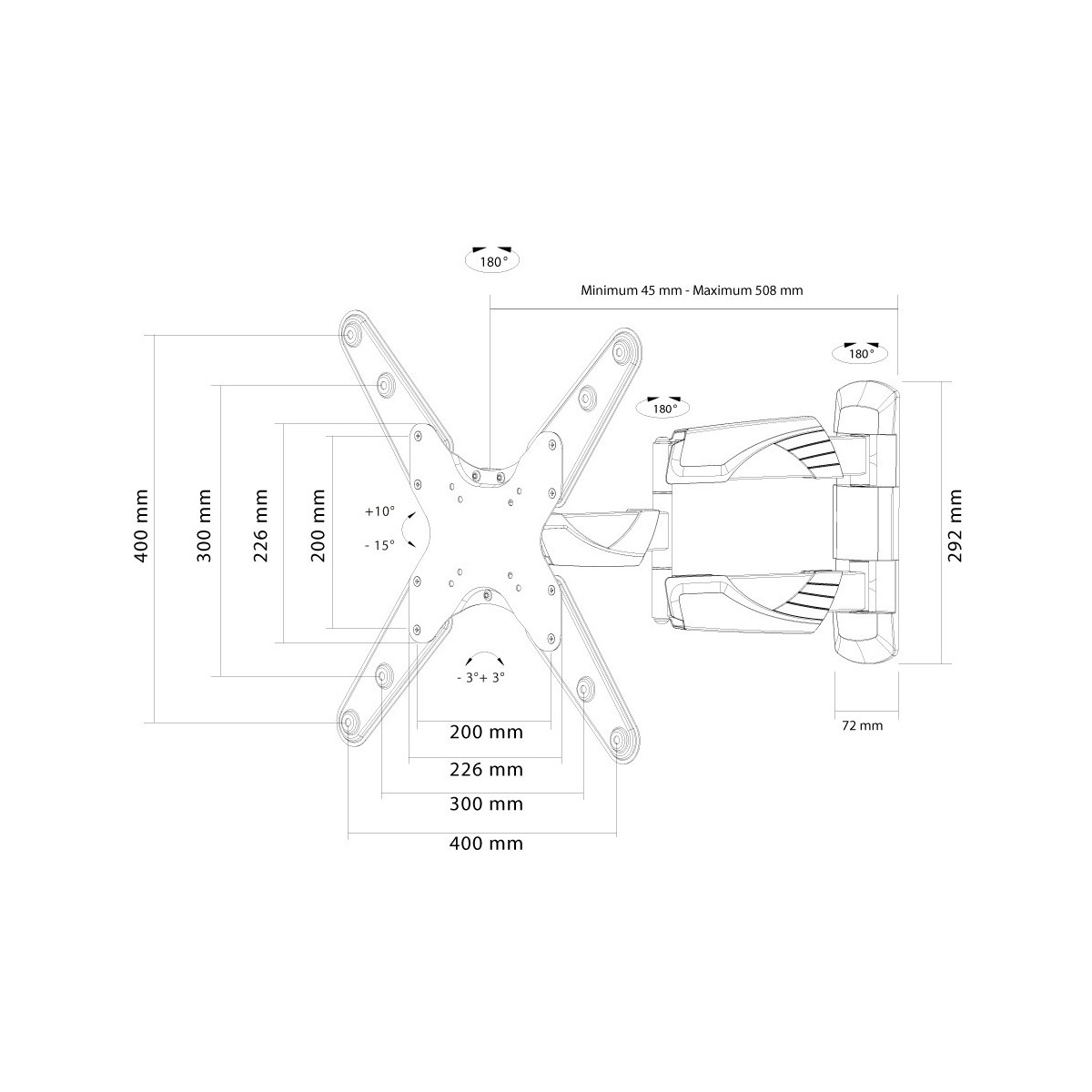 Il NM-W440BLACK ha tre punti di articolazione ed è adatto a schermi fino a 55" (140 cm) con una capacità massima di trasporto di 25 kg. Questo prodotto è adatto per schermi con fori VESA da 75x75 fino a 400x400 mm.
