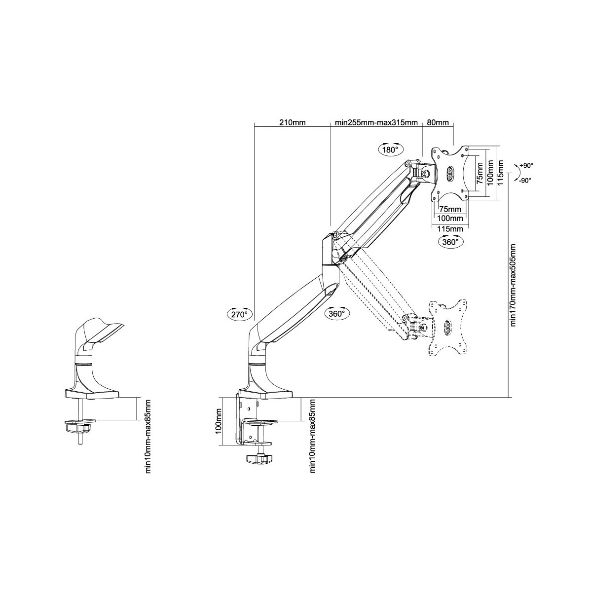Utilizzate un braccio porta monitor per sfruttare pienamente le capacità del vostro schermo. Il braccio è facile da regolare in altezza e profondità. È inoltre possibile inclinare lo schermo in senso verticale, orizzontale e farlo ruotare; questo crea la posizione ergonomica di lavoro ideale riducendo il rischio di mal di schiena e al collo. I cavi possono essere collocati sulla parte inferiore del braccio.