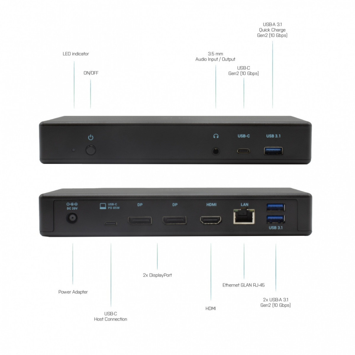 La docking station USB-C supporta fino a tre monitor esterni con risoluzione 4K e supporta qualsiasi notebook con sistema operativo Windows 10. Il nuovissimo protocollo integrato DL 1.4 supporta anche la risoluzione 5K/60 Hz, ciò fa di questa docking station il compagno ideale per i professionisti grafici, analisti di dati, editor di film oppure gli amanti dei video in alta risoluzione.