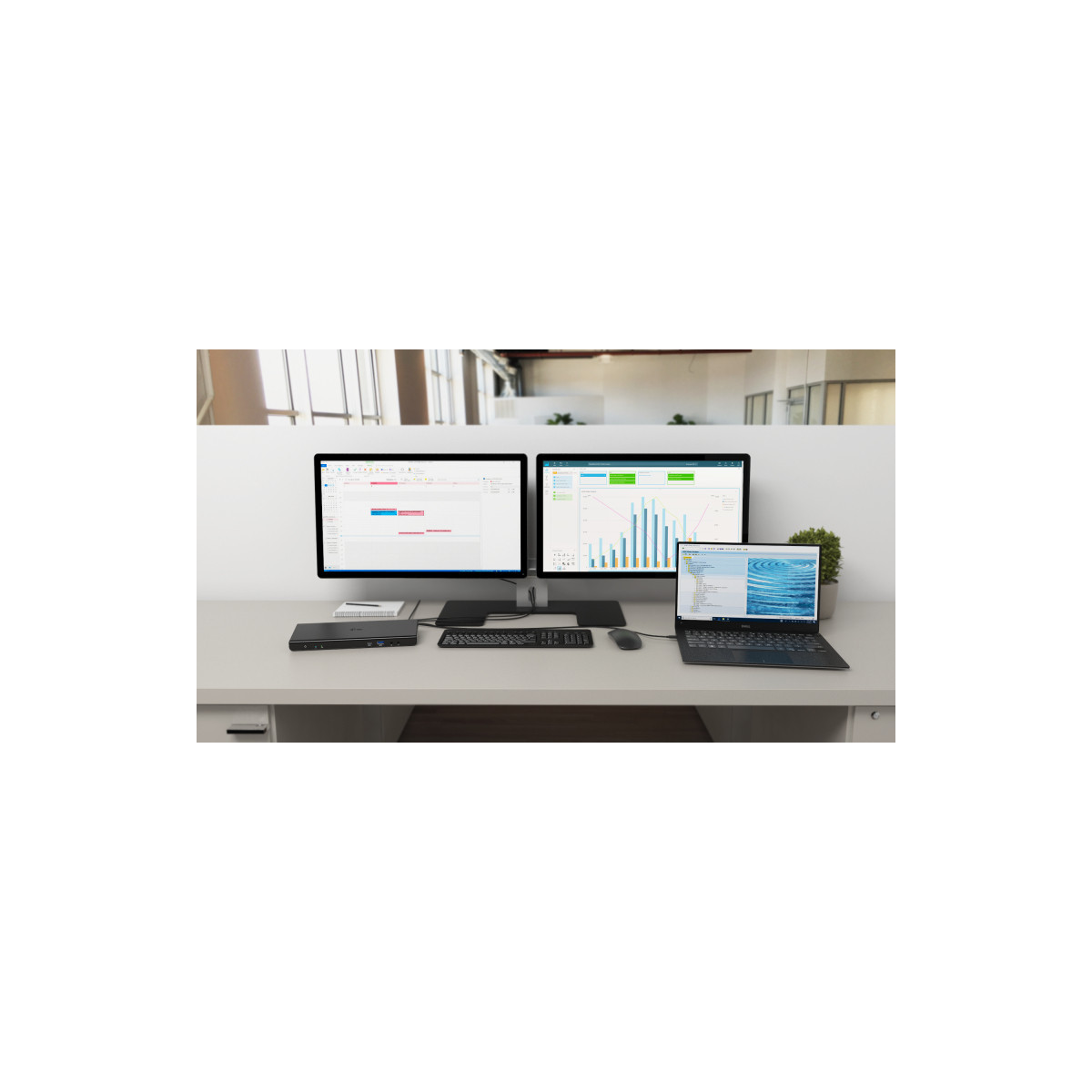 Connettendo i vostri dispositivi preferiti a notebook/tablet dotati di interfaccia USB-A 3.0, USB-C o Thunderbolt 3 tramite questa Stazione dock, sparisce il solito groviglio di cavi, la scrivania rimane sempre ordinata e non occorrerà più collegare/scollegare in continuazione i rispettivi dispositivi quando dovete andare via e portare con sé il notebook/tablet, siccome basta collegare la Stazione dock tramite un solo cavo ed è pronta ad essere usata. Il cavo di collegamento con entrambi i connettori (USB-C a C, USB-C ad A) fa parte della confezione. L’installazione degli strumenti dal sistema operativo Win 10 è automatica, per altri sistemi operativi, scaricare gli strumenti cliccando qui.