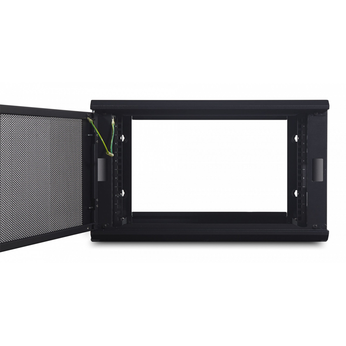 APC AR106. Capacità di rack: 6U, Tipo: Da parete, Peso massimo (capacità): 90,7 kg. Dimensione: 48,3 cm (19"), Larghezza: 599 mm, Profondità: 400 mm. Larghezza imballo: 688 mm, Profondità imballo: 485 mm, Altezza imballo: 293 mm