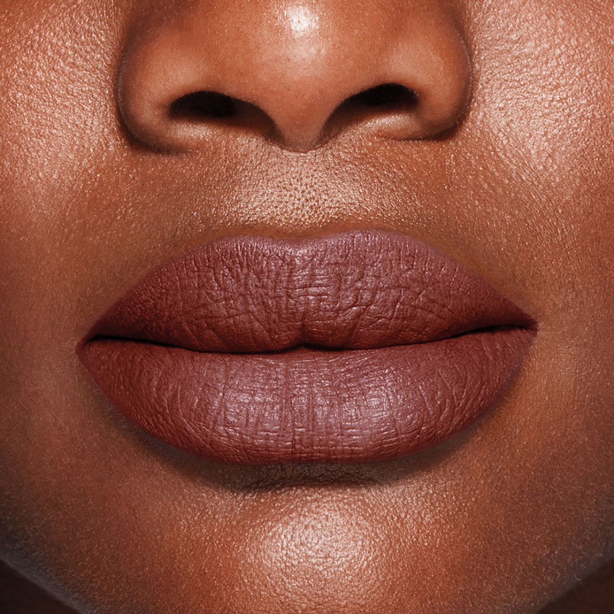 Un rossetto matte e leggero che offre copertura totale e colore vellutato a lunga tenuta.