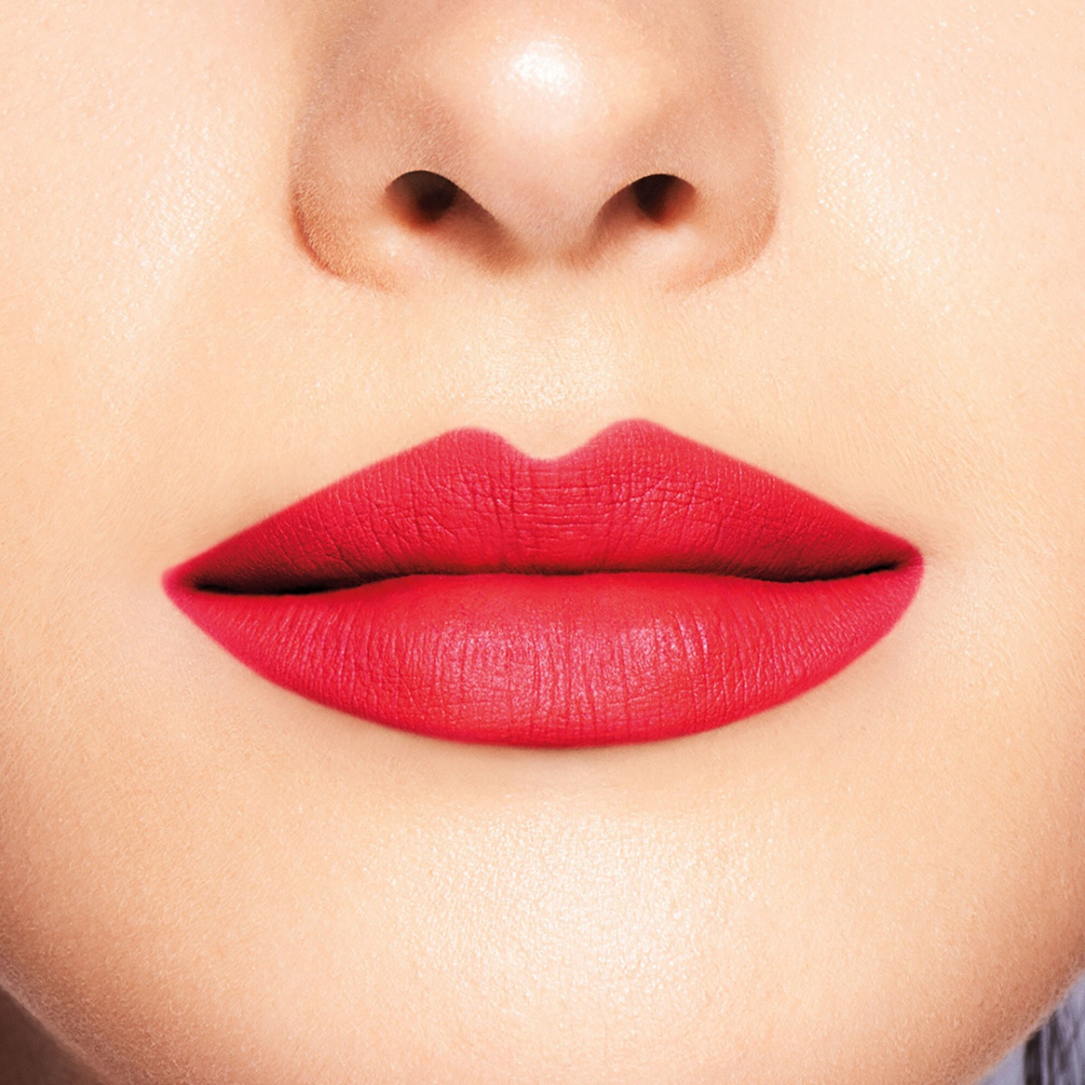 Un rossetto matte e leggero che offre copertura totale e colore vellutato a lunga tenuta.