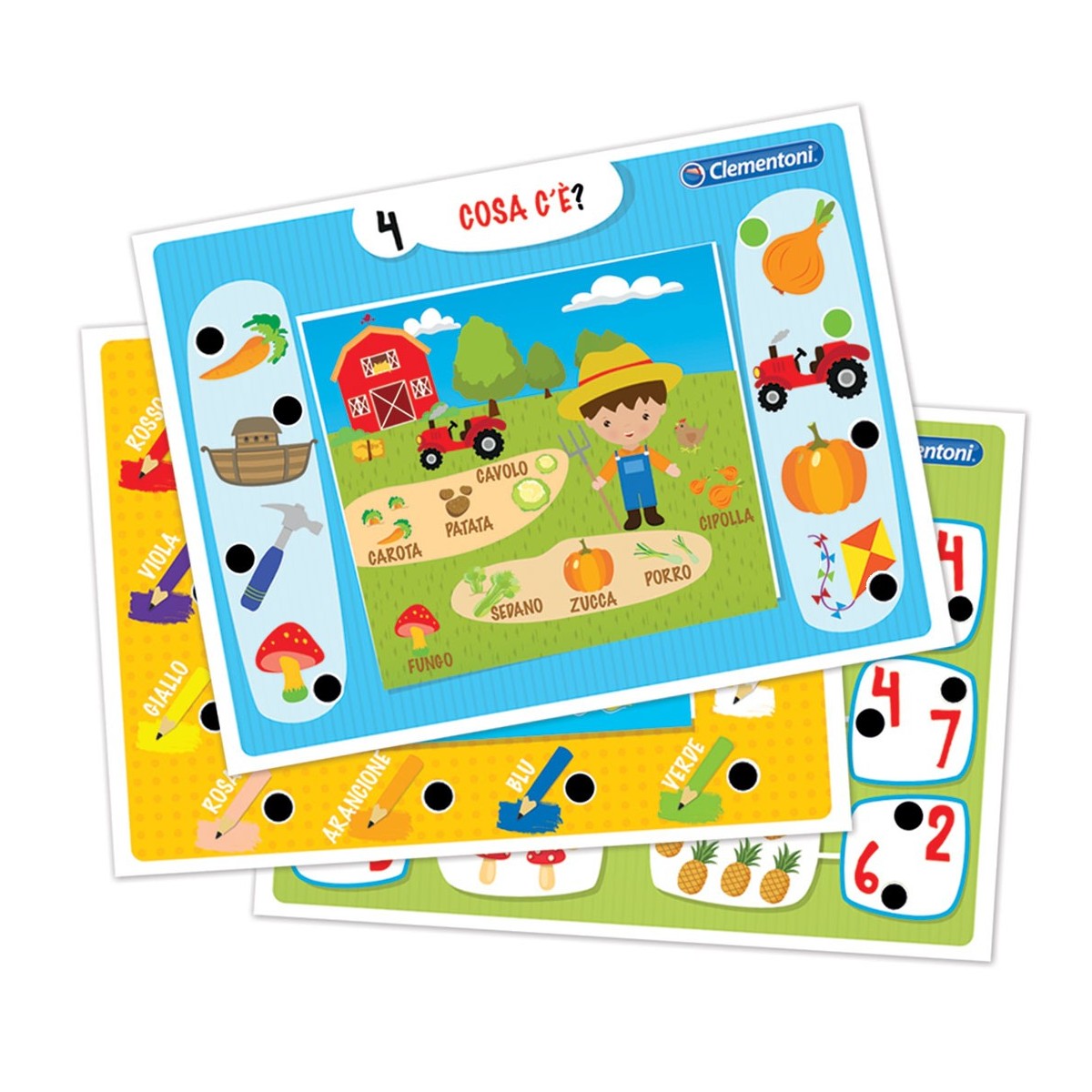 Il gioco contiene: tessere ad incastro, puzzle, schede e cubi per apprendere l'alfabeto, i numeri e le quantità e insegna a leggere e comporre le prime parole.