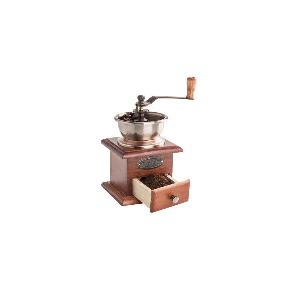 Macina caffè in legno di faggio e acciaio inox, con esterno in rame macina in ceramica misure: 10,5 x 10,5cm - h 17,5cm