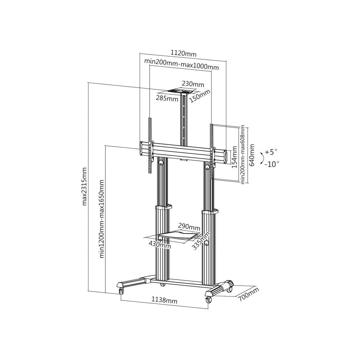 ROLINE 17031261. Peso massimo (capacità): 100 kg, Capienza minima dimensioni dello schermo: 152,4 cm (60"), Capienza massima dimensioni dello schermo: 2,54 m (100"), Compatibilità interfaccia di montaggio (min): 200 x 200 mm, Compatibilità interfaccia di montaggio (max): 1000 x 600 mm. Regolazione altezza, Inclinazione: 5 - -10°. Colore del prodotto: Argento