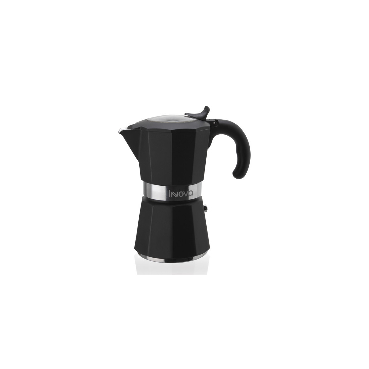 Miss Moka Innova Black 6 tazze Made in Italy in alluminio alimentare ed acciaio manico ergonomico e svitabile guarnizione in silicone, igienica, facile da pulire e resistente al calore beccuccio anti-goccia oblò trasparente adatta a piani di cottura ad induzione