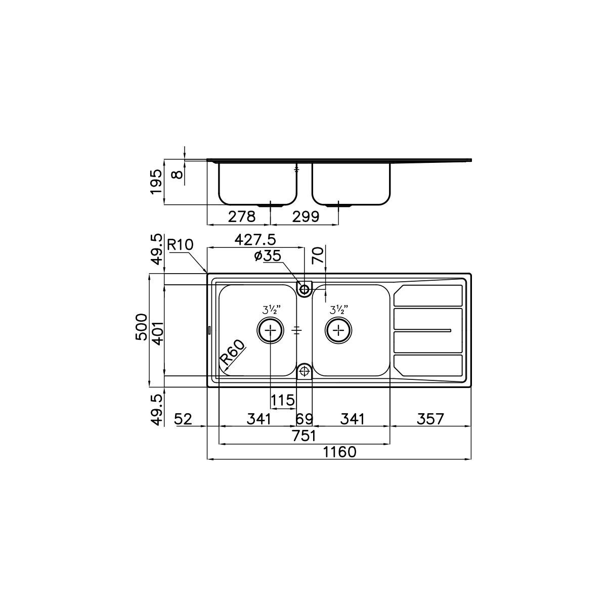| Numero di vasche per lavello | 2 ciotole |