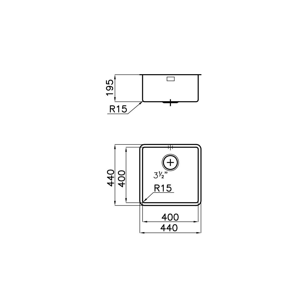 - Vasca: 400x400xh195 mm;