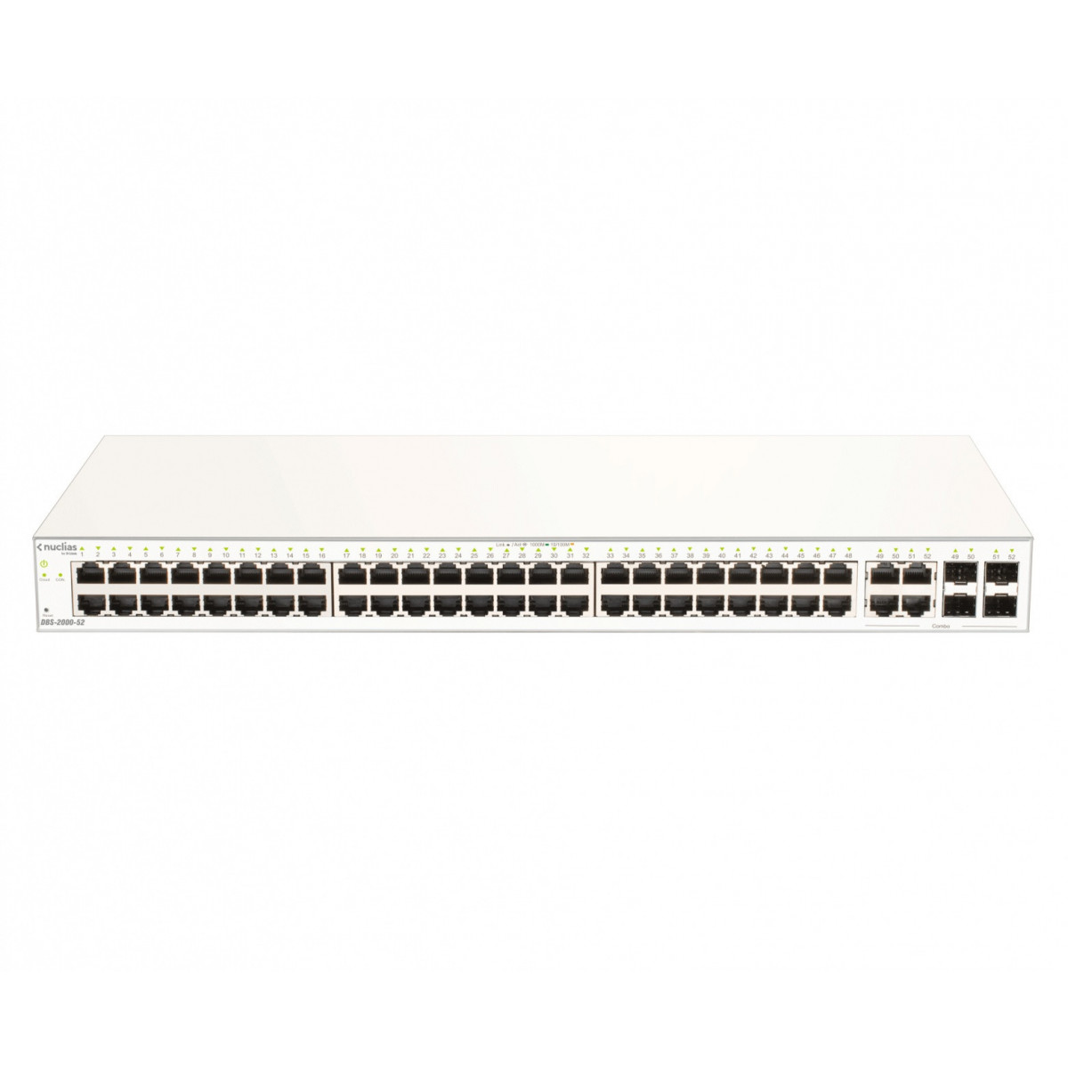D-Link DBS-2000-52. Tipo interruttore: Gestito. Tipo di porte RJ-45: Gigabit Ethernet (10/100/1000), Quantità di porte RJ-45: 48, Console port: RJ-45. Capacità di commutazione: 104 Gbit/s. Standard di rete: IEEE 802.3ad